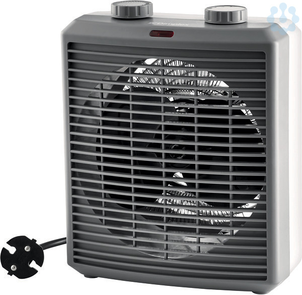 Standheizlüfter mit Thermostat und Frostschutzfunktion, Kontrollleuchte Heizen, Kaltluftstufe, Überhitzungsschutz und Kippschutz. Heizleistung 2,0 kW, Schaltstufen AUS / Kalt / 0,8 / 2,0 kW, Farbe grau