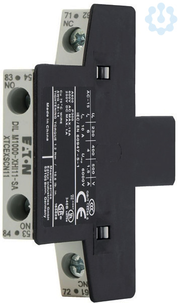 Hilfsschalterbaustein, mit zwangsgeführten Kontakten, Funktion: für Standardanwendungen, 2-polig, Anschlusstechnik: Schraubklemmen, Bemessungsbetriebsstrom AC-15 220 V 230 V 240 V: Ie= 4 A, Bemessungsbetriebsstrom AC-15 380 V 400 V 415 V: Ie= 4 A, Bemessungsbetriebsstrom AC-15 380 V 400 V 500 V: Ie= 4 A, Kontaktbestückung S = Schließer: 1 S, Kontaktbestückung Ö = Öffner: 1 Ö, Montageart: Seitenanbau, verwendbar für: DILM40 - DILM225A, DILMP63 - DILMP200, DILMF40 - DILMF95, Ausführung: seitliche Hilfsschalter, Hinweise: Zwangsgeführte Kontakte, nach IEC/EN 60947-5-1 Anhang L, innerhalb der Hilfsschalterbausteine, Hilfsöffner verwendbar als Spiegelkontakt nach IEC/EN 60947-4-1 Anhang F (nicht Spätöffner)