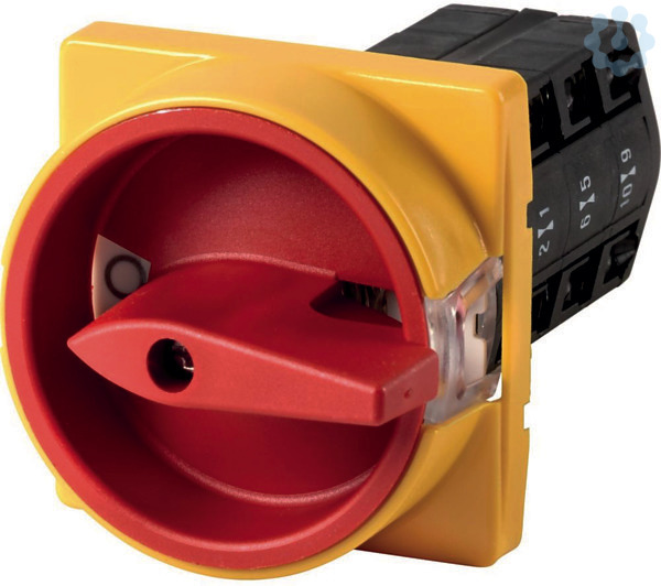 Hilfsstromtrennschalter, Sortiment: Steuerschalter, Typkenner: TM, STOPP-Funktion: NOT-AUS-Funktion, mit rotem Drehgriff und gelbem Sperrkranz, Hinweis: bis 250 V AC pro Kontakt, Kontakte: 6, Abschließbarkeit: abschließbar in 0-Stellung, Schutzart: Front IP65, Bauform: Einbau, Schaltwinkel: 90 °, Bemessungsbetriebsleistung AC-23A, 50 - 60 Hz 400 V: P = 3 kW, Bemessungsdauerstrom: Iu = 10 A, 3 Baueinheit(en), Normen und Bestimmungen: IEC/EN 60947, VDE 0660, CSA, UL, Steuerschalter nach IEC/EN 60947-5-1, Hilfsstromschalter nach IEC/EN 60947-5-1