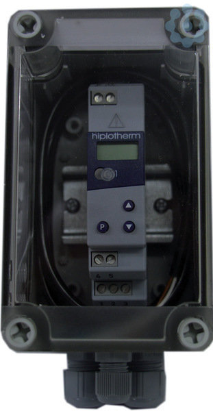 der aktuellen Temperatur, Alarmanzeige bei Unter-/Überschreitung der Grenztemperaturen oder Fühlerfehler, Regelbereich : -200 bis +600°C, Schaltleistung : 10 A, 250 V AC, Wechsler, Spannungsversorgung : 230 V AC, staub - und strahlwasserdichtes Gehäuse aus Polycarbonat, IP65, inkl. Widerstandsthermometer PT 100 (TW-02), mit PUR ummantelter Anschlussleitung.