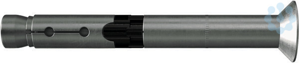 Der fischer Hochleistungsanker FH II SK mit Senkkopf ist ein Hülsenanker aus nicht rostendem Stahl. Der Anker wird in der zeitsparenden Durchsteckmontage gesetzt. Beim Anziehen des Ankers wird der Konus in die Spreizhülse gezogen und verspannt diese gegen die Bohrlochwand. Der schwarze Kunststoffring verhindert, dass sich der Anker mitdreht, und nimmt den Anzugsschlupf auf. Das Anbauteil wird dadurch an den Verankerungsgrund gezogen. Der fischer Hochleistungsanker FH II SK mit Senkkopf ist bestens geeignet, um in gerissenem und ungerissenem Beton Geländer, Treppen und Leitern im Außenbereich zu befestigen.
