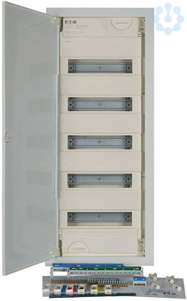 Hohlwand-Kleinverteiler KLV, Schutzklasse II, Kunststoff-Kapselung mit Stahlblechtür, Frontabdeckung plombierbar und laserbeschriftet entsprechend IEC/EN 60670-24, plus 2 Teilungseinheiten Reserve je Reihe, Markierungsschlitze im Mauerkasten, einzigartiges superflaches Türrahmendesign, stabiler Türdrehriegel optional austauschbar durch Sicherheitsschließung, Kabelhalter für aufgeräumte Verdrahtung, umfangreiches Zubehörsortiment, Lieferumfang: Gehäuse, Geräteträger, Frontabdeckung, Null- und Schutzleiterklemmen mit SK Schraubtechnik, Libelle, 3D-Putzausgleich mit bis zu 18mm Tiefenausgleich, Kabelhalter, Hohlwandanker, Montageanleitung, Beschriftungsbogen, praxisgerechte Spezialverpackung. Normen: Entsprechend IEC/EN 60670-24 (PD), IEC/EN 62208 und somit für Verteilungen nach IEC/EN 61439-3 freigegeben.