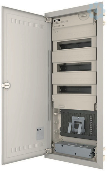 Hohlwand-Kleinverteiler KLV Hybrid, Schutzklasse II, Kunststoff-Kapselung mit Stahlblechtür, Frontabdeckung plombierbar und laserbeschriftet entsprechend IEC/EN 60670-24, plus 2 Teilungseinheiten Reserve je Reihe, Markierungsschlitze im Mauerkasten, flaches Türrahmendesign, stabiler Türdrehriegel optional austauschbar durch Sicherheitsschließung, Kabelhalter für aufgeräumte Verdrahtung, umfangreiches Zubehörsortiment, Lieferumfang: Gehäuse, Geräteträger, Frontabdeckung, Null- und Schutzleiterklemmen mit SK Schraubtechnik, Libelle, 3D-Putzausgleich mit bis zu 18mm Tiefenausgleich, Montageplatte, Gerätehalter, 1-fach Steckdose, Kabelhalter, Hohlwandanker, Montageanleitung, Beschriftungsbogen, praxisgerechte Spezialverpackung. Normen: Entsprechend IEC/EN 60670-24, IEC/EN 62208 und somit für Verteilungen nach IEC/EN 61439-3 freigegeben. Zur Erlangung der SKII müssen alle Geräte auf der Montageplatte in schutzisolierter Ausführung eingebaut sein.