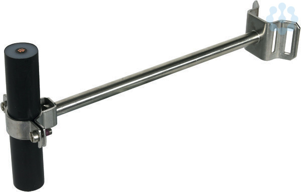 Leitungshalter zur Befestigung an Rohren z. B. mit Bandrohrschelle für die Verlegung der HVI power Leitung in explosionsgefährdeten Bereichen der Ex-Zone 1 (Gase, Dämpfe, Nebel) sowie Ex-Zone 21 (Stäube). Die besonderen Installationsbedingungen stellen sicher, dass ein elektrischer Funke zu benachbarten metallenen Teilen beim Blitzstromdurchgang durch die HVI power Leitung verhindert wird. Ausführung mit Distanzstab Abstand 250 mm, zur Befestigung auf metallenen Konstruktionsteilen (z. B. Fassaden).
