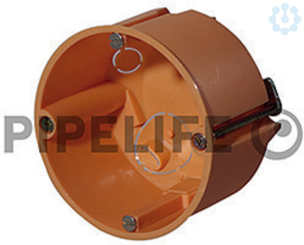 Hohlwand Gerätedose, flammidrig, Ausführung mit Metallkralle, mit vermontierten Geräteschrauben, Ausbrechöffnungen für Rohre und Leitungen, Geräteschraubenabstand 60 mm, Schutzart IP30, VDE geprüft, Bohrloch Ø 68 mm, orange, Tiefe 47 mm
