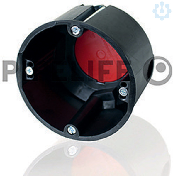 Hohlwand Brandschutz-Geräteverbindungsdose, Feuerwiderstandsklasse EI90, Zulassung ETA 15/0598, Ausführung mit Metallkralle, mit vormontierten Geräteschrauben, Tiefe 54mm, Bohrloch Ø 74mm, halogenfrei, Material: hochfester, temperaturbeständiger Spezialkunststoff SAFE90, bis zu 5-Dosen anreihbar, für 2 Kabel mit jeweils max. Ø 14,4mm