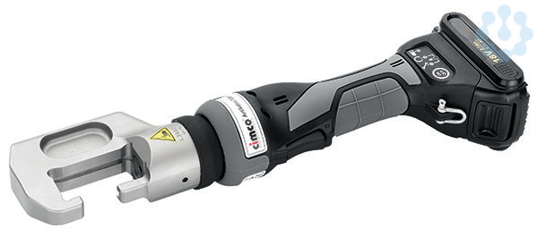 Presswerkzeug in Stabform, Besondere Details: Presskopf 180 drehbar, Austauschbare Presseinsätze, Max. Verarbeitungsgeschwindigkeit durch Hochleistungsmotor, Automatische Rücklauf nach vollendeter Pressung, Offener Presskopf in C-Form, Presskraft: 62 kN, Hub/Öffnungsweite: 17 mm, Pressbereich: 6 - 185 mm³, Verpresszeit (querschnittsabhängig): 8 - 9 s, Akkuspannung: 18 V, Akkukapazität: 2.0 Ah Li-Ion, Akkuladezeit: 30 Min., Gewicht inkl. Akku: 3300 g, Abmessung (L x B x H): 390 x 75 x 128 mm, Arbeitsbereich: -10 C bis +50 C
