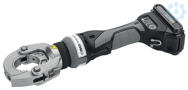 Presswerkzeug in Stabform, Besondere Details: Presskopf 180 drehbar, Austauschbare Presseinsätze, Max. Verarbeitungsgeschwindigkeit durch Hochleistungsmotor, Automatische Rücklauf nach vollendeter Pressung, Presskopf mit Schnellverschluss, Presskraft: 62 kN, Hub/Öffnungsweite: 13 mm, Pressbereich: 6 - 300 mm³, Verpresszeit (querschnittsabhängig): 8 - 9 s, Akkuspannung: 18 V, Akkukapazität: 2.0 Ah Li-Ion, Akkuladezeit: 30 Min., Gewicht inkl. Akku: 3300 g, Abmessung (L x B x H): 390 x 75 x 128 mm, Arbeitsbereich: -10 C bis +50 C