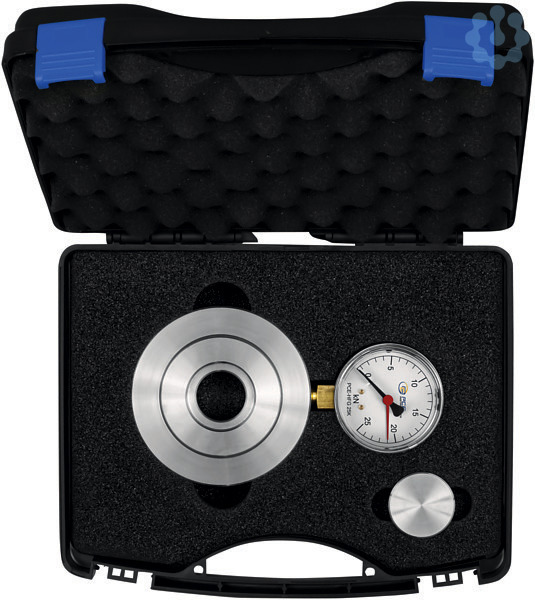 Eine weitere Besonderheit vom hydraulischen Kraftaufnehmer ist die 27 mm große Ringöffnung. Mit dieser Ringöffnung lassen sich mit dem hydraulischen Kraftaufnehmer Messungen an zum Beispiel Führungsschienen, Wellen und auch Bolzen von zum Beispiel einer Hydraulikpresse durchführen. Mit dem einsetzbaren Stempeladapter lässt sich der hydraulische Kraftaufnehmer in Sekundenschnelle von einem Ringkraftmessgerät in ein Druckstempelkraftmessgerät umbauen. Somit ist der hydraulische Kraftaufnehmer flexibel einsetzbar.