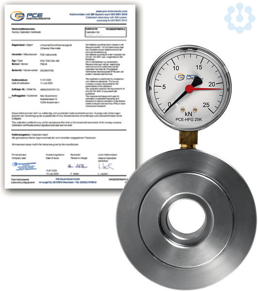 Eine weitere Besonderheit vom hydraulischen Kraftaufnehmer ist die 27 mm große Ringöffnung. Mit dieser Ringöffnung lassen sich mit dem hydraulischen Kraftaufnehmer Messungen an zum Beispiel Führungsschienen, Wellen und auch Bolzen von zum Beispiel einer Hydraulikpresse durchführen. Mit dem einsetzbaren Stempeladapter lässt sich der hydraulische Kraftaufnehmer in Sekundenschnelle von einem Ringkraftmessgerät in ein Druckstempelkraftmessgerät umbauen. Somit ist der hydraulische Kraftaufnehmer flexibel einsetzbar.