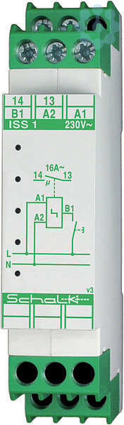 Die elektronisch gesteuerten Impulsschalter ISS 1 und ISS U1 sind aufgrund ihres sehr leisen Schaltverhaltens problemlos auch dort einsetzbar, wo konventionelle, elektromechanische Stromstossrelais als störend laut empfunden werden.Die Unterputzversion ISS U1 eignet sich u. a. auch zum einfachen Nachrüsten bestehender Anlagen oder zur Altbausanierung und kann aufgrund seiner geringen Abmessungen in Schalter- oder Abzweigdosen eingesetzt werden. Relaiskontakte 1 Schließer potentialfrei 16A / 250V AC, Maße: 18x55mm, 230V AC - 1S pf 16A