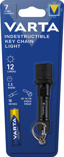 Kleine und praktische Schlüssel-Taschenlampe mit heller 5 mm LED - Ergänzendes Produkt zur erfolgreichen Indestructible Serie inkl. 1x Longlife POWER AAA Micro Batterie, extrem robust (Falltest 9m) und spritzwassergeschützt nach IPX4, Körper aus ABS-Kunstoff, Leuchtenkopf und Endkappe aus thermoplastischem Gummi mit einer Lichtausbeute von 12 Lumen, Laufzeit 3,5 h, Leuchtweite 10 m, inkl. praktischem Schlüsselanhänger und Rollstop, integrierter Drehschalter am Leuchtenkopf.
