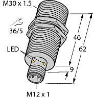 Induktiver Sensor, Gewinderohr, M30 x 1,5, Messing verchromt, DC 3?Draht, 10...30 VDC, Schließer, PNP?Ausgang, Steckverbinder, M12 x 1, Faktor 1 für alle Metalle, magnetfeldfest, hoher Schaltabstand, Bemessungsschaltabstand: 20 mm, bündig
