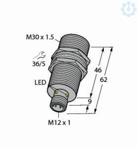 Induktiver Sensor, Gewinderohr, M30 x 1,5, Messing, PTFE-beschichtet, DC 3?Draht, 10...30 VDC, Schließer, PNP?Ausgang, Steckverbinder, M12 x 1, Faktor 1 für alle Metalle, magnetfeldfest, hoher Schaltabstand, Bemessungsschaltabstand: 20 mm, bündig