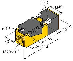 Induktiver Sensor, quaderförmig, Höhe 40 mm, aktive Fläche in 9 Richtungen positionierbar, Kunststoff, PBT?GF30?V0, Eck?LEDs mit hoher Leuchtkraft, optimale Sicht auf Betriebsspannungsanzeige und Schaltzustandsanzeige in jeder Einbausituation, DC 4?Draht, 10...65 VDC, Wechsler, PNP?Ausgang, Klemmenraum, Faktor 1 für alle Metalle, Schutzart IP68, magnetfeldfest, erweiterter Temperaturbereich, hohe Schaltfrequenz, Bemessungsschaltabstand: 15 mm, bündig