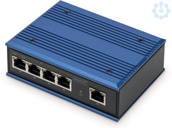 Industrial 4-Port Gigabit PoE Switch + 1 uplink DIN rail, erweiterter Temp. Bereich, Der DIGITUS® Industrial Gigabit Switch ist für raue Umgebungen entworfen, in denen er Feuchtigkeit, Temperaturschwankungen und Vibrationen ausgesetzt ist. Mit einem Temperaturbereich von -40°C bis 85°C ist der Industrial Gigabit Switch unter den widrigsten Bedingungen einsetzbar. Durch die PoE Ports mit IEEE802.3af/at Unterstützung können PoE fähige Geräte mit bis zu 30 W je Port versorgt werden. Es ist eine ständige Verfügbarkeit in den hochsensiblen Bereichen wie Transport, Produktion, Verkehr und Sicherheitsüberwachung gewährleistet. Durch das einfache Plug-and-Play-System kann eine schnelle Einbindung des Industrial Gigabit Switch in das jeweilige Umfeld erfolgen. Durch die Gigabit Konnektivität stellt der Industrial Gigabit Switch somit eine flexible, kostengünstige Lösung für das industrielle Umfeld dar.
