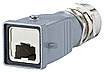 Steckergehäuse mit Klammerverschluss nach Norm ISO/IEC 24702 und IEC 61076-3-106 Var. 5, IP67 geschütztes Gehäuse zur Aufnahme der Industry Steckereinsätze, höherer anschließbarer Kabelmantel-Durchmesserbereich von 10 mm, resistent gegen Schweißperlen, industrietaugliches Metallgehäuse mit erhöhter Robustheit, Brennbarkeitsklasse nach UL 94V-0, bessere Chemikalienbeständigkeit, nach der Konfektion aufschnappbarer Clip zur Farbkodierung , Kabel kann bei vormontiertem Steckergehäuse durchgeschoben werden, passende Steckereinsätze: E-DAT Industry RJ45 field plug insert, E-DAT Industry RJ45 plug insert