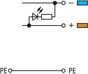4-Leiter-Initiatoreneinspeiseklemme. LED grün. für NPN-(minus-)schaltende Initiatoren. Einspeisung auf der Initiatorenseite. mit farbig bedruckten Leitereinführungen. 2,5 mm². CAGE CLAMP®. 2,50 mm². grau