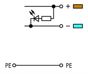 4-Leiter-Initiatoreneinspeiseklemme. LED grün. für PNP-(plus-)schaltende Initiatoren. mit Abschlussplatte. mit farbig bedruckten Leitereinführungen. 2,5 mm². CAGE CLAMP®. 2,50 mm². grau