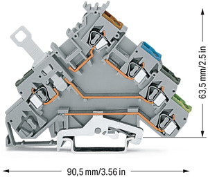 4-Leiter-Initiatorenklemme. mit farbig bedruckten Leitereinführungen. 2,5 mm². CAGE CLAMP®. 2,50 mm². grau