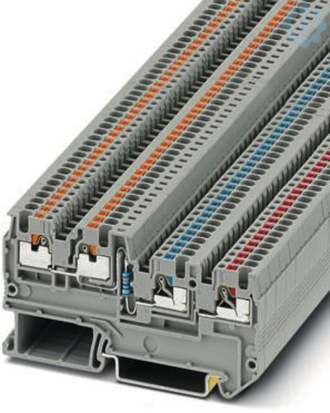 Initiatoren-/Aktorenklemme, mit 1,8 k? Widerstand, Nennspannung: 24 V, Nennstrom: 13,5 A, Anschlussart: Push-in-Anschluss, Bemessungsquerschnitt: 1,5 mm², Querschnitt: 0,14 mm² - 1,5 mm², Montageart: NS 35/7,5, NS 35/15, Farbe: grau