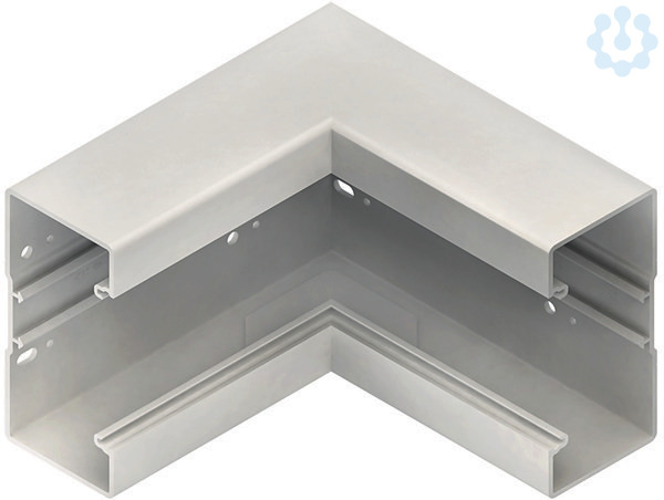 Gerätekanal-Inneneck 90°, einzügig, symmetrisch, mit zwei durchgehenden Aufnahmeprofilen im Rückenteil sowie durchlaufender Perforation im Kanalrücken, einschließlich zwei Kanalkupplungen KUV, Stoßstellenverbinder BSV65 zur exakten Verbindung mit dem Kanalunterteil bitte gesondert bestellen. VDE zertifiziert! Abmessungen (ca. Maße) H x T : 133 x 66 mm Deckelöffnung : 80 mm Schenkellänge aussen : 198 mm für Gerätekanalunterteil : BU651308... Werkstoff : PVC-hart (Polyvinylchlorid) Farbton : cremeweiß RAL : 9001 (ähnlich)
