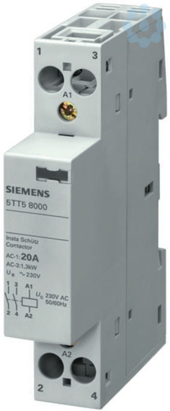 INSTA-Schütz mit 2 Schließern, Kontakt für AC 230V, 400V 20A Ansteuerung AC 24V Siemens Schaltgeräte für Anwendungen im Wohn-, Zweckbau und industriellen Anwendungen. Die innovativen Schaltgeräte von Siemens sind ein wichtiger Bestandteil der SENTRON Komponenten für die Elektroinstallation. Mit den Fernschaltern, Schaltrelais, Insta-Schützen und Zeitschaltuhren bieten sie zahlreiche Möglichkeiten zur Realisierung diverser Schaltfunktionen. Ob für Wohnbau, Infrastruktur oder industrielle Anwendungen, Siemens bietet das richtige Portfolio für alle Schaltfunktionen. So haben Sie für jede Anforderung das passende Gerät! Die Schaltgeräte von Siemens zeichnen sich vor allem aus durch: 1. Komfortable und einfache Montage- sowie Anschlusstechnik. 2. Zuverlässige Sicherheit bei der Installation dank standardmäßigem Berührungsschutz. 3. Umfangreiches und problemlos montierbares Zubehör. 4. Optimale Technik für Ihre Sicherheit - nur von Siemens. www .de/lowvoltage. Siemens bietet für die sichere, effiziente elekt