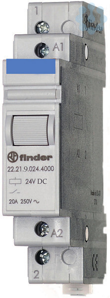 Installationsrelais für 35 mm-Schiene, 1 Schließer für 20 A / 250 V AC, Kontaktmaterial AgSnO², max. Schaltleistungen bei 230 V AC: AC1 5000 VA, AC15 1000 VA, Glüh- und Halogenlampen 1000 W, Leuchtstofflampen mit EVG 400 W, Leuchtstofflampen mit KVG 360 W, Energiesparlampen 200 W, LED (230 V AC) 200 W, NV-Halogenlampen oder LED mit EVG 200 W, NV-Halogenlampen oder LED mit KVG 400 W, Spulendaten: 12 V DC, 1,25 W, 115 Ohm, Breite 17,5 mm, Prüftaste, Relaisschutzart: IP 20