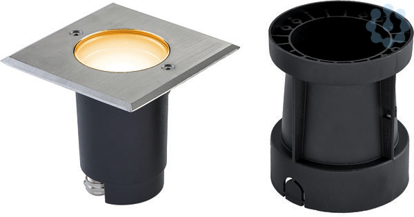 Der Leuchtenkörper ist aus Aluminium, die Abdeckplatte hingegen aus V2A-Edelstahl gefertigt. Die Kabeleinfuehrung erfolgt ueber die am Boden befindliche Kabelverschraubung, welche fuer Kabel bis 9mm Durchmesser geeignet ist. Es besteht die Möglichkeit, die Leuchte ohne den im Lieferumfang enthaltenen Kunststoff-Einbautopf zu montieren, in diesem Fall beträgt der Lochausschnitt 96mm während die Einbautiefe unverändert bleibt. Das mitgelieferte GU10-LED-Leuchtmittel ist außerdem auch ueber Phasenabschnitt dimmbar (nicht fuer elektrische Dimmer geeignet) und kann bei Bedarf jederzeit ausgetauscht werden. Die maximale Überfahrgeschwindigkeit beträgt 20km/h, der Schwenkwinkel beträgt 10°.. Zusätzlich ist ein mattes Schutzglas im Lieferumfang enthalten.