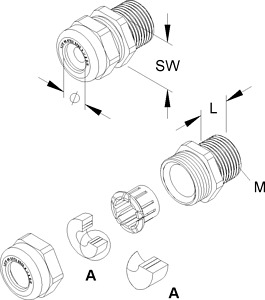 IPON-Kabelverschraubung nach ATEX-Richtlinie 94/9/CE, mit langem metrischem Anschlussgewinde nach DIN EN 60423. Nenngröße : M 16 für Kabel-Ø : 5,5 - 8,5 mm Anschlussgewindelänge : 15 mm Schlüsselweite : 19 mm Schutzart : IP54 mit Anschlussgewinde-Dichtring 987...(bitte gesondert bestellen!) : IP68 Einsatztemperaturbereich : -20° bis 55°C Werkstoff Verschraubungskörper : Polyamid Werkstoff Dichtring : CR - Neoprene Werkstoff Klemmeinsatz : PC Polycarbonat ATEX Eigenschaften : Zündschutzart EX e