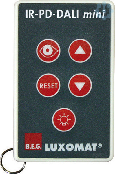 Mini-Fernbedienung für Endanwender, Mobiler Lichtschalter zum Ein- und Ausschalten der Beleuchtung, Inklusive Ring zur Befestigung am Schlüsselbund, Einfache Programmierung der Masterversionen folgender Präsenzmelder:, , , PD2-M-DALI/DSI, PD4-M-DALI/DSI, PD9-M-DALI/DSI