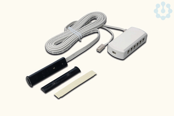 Berührungsloser IR-Schalter zum Anschluss von LED-Leuchten mit 24V, Anschlussleitung 2,5m mit LED 24-Stecker, Schaltleiteitung 2,5m mit 11-fach Verteiler, Zur Montage in 14,5mm Bohrungen oder zum ankleben mit beiliegendem Klebepad, am Schalter kann zwischen folgenden beiden Funktionen gewählt werden: Funktion 1 (Lieferzustand): Lichteinschaltung mit erster Bewegung, -ausschaltung mit folgender, Funktion 2: Beim Öffnen der Tür schaltet sich das Licht ein ? und beim Schließen der Tür wieder aus, zur Überwachung mehrerer Türen können bis zu 11 Schalter parallel angeschlossen werden