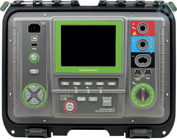 , Das hochpräzise IsolationsmessgerätMETRISO PRIME 10 wurde zur Überprüfung von Isolationsschäden und zum Schutz gegen elektrischen Schlag in Versorgungsnetzten entwickelt. Es dient zur Messung des Isolationswiderstands bis 40 TOhm bei einer frei einstellbaren Prüfspannung zwischen 50 ? 10.000 V. Weitere Vorteile sind die automatische Messbereichsumschaltung / Kapazitätsentladung. Messung der Kapazität und Temperatur, Niederohm- sowie Spannungsmessung AC/DC 0 ? 750 V. Messkategorie CAT IV 600 V, ,