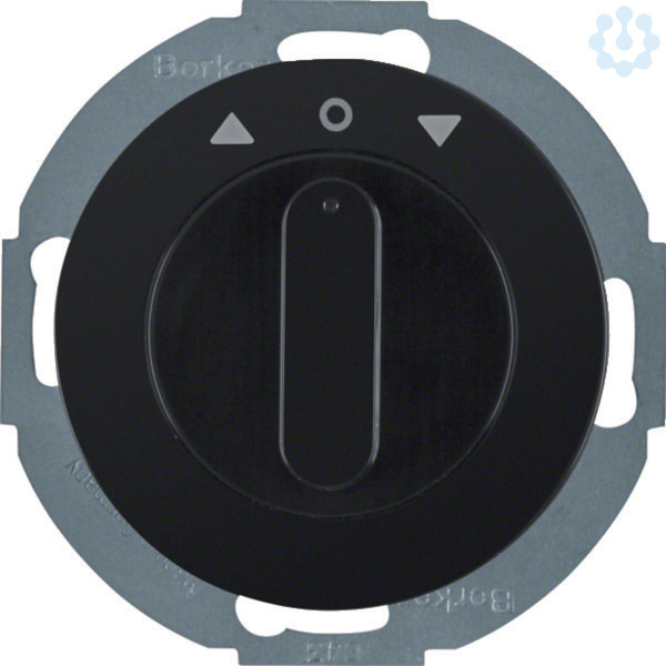 Jalousie-Drehschalter 2p, Zentralstück, Drehknopf, R.Classic, schwarz glänzend. Jalousie-Drehschalter mit Zentralstück und Drehknopf, Tastrastfunktion, 0-Stellung, mit Schraubklemmen. Hinweis: Für den Umbau in Drehtaster Arretierungsscheibe (Zubehör) verwenden.