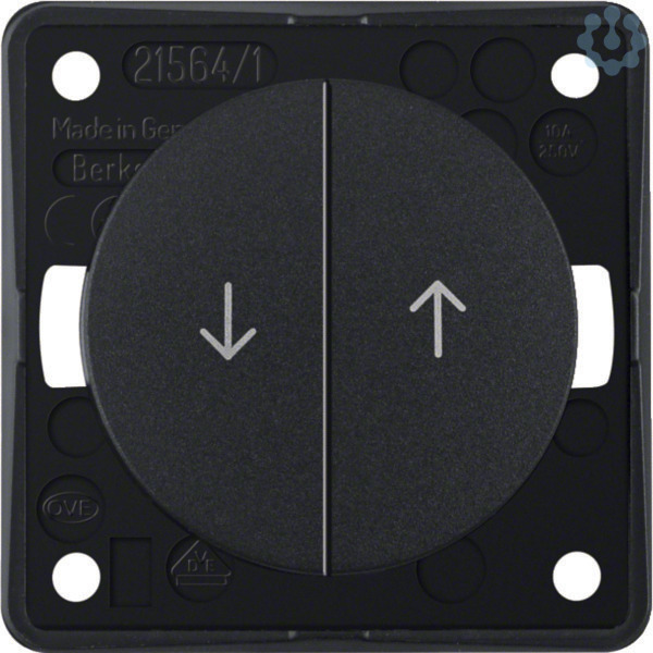 Jalousie-Serientaster mit Aufdruck Symbol Pfeile, Integro Flow/Pure, anthr. mt. Jalousie-Serientaster in Kompaktbauweise mit elektrischer Verriegelung als Sperre gegen beidseitiges Eintasten, Schraubklemmen.