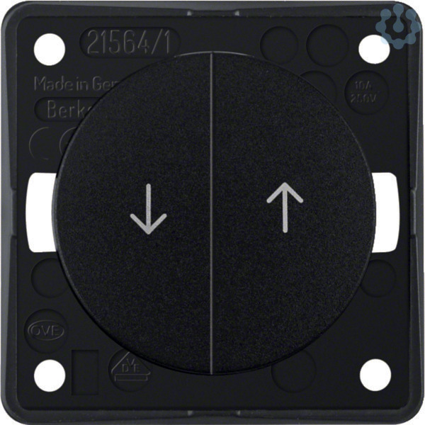 Jalousie-Serientaster mit Aufdruck Symbol Pfeile, Integro Flow/Pure, schw. gl. Jalousie-Serientaster in Kompaktbauweise mit elektrischer Verriegelung als Sperre gegen beidseitiges Eintasten, Schraubklemmen.