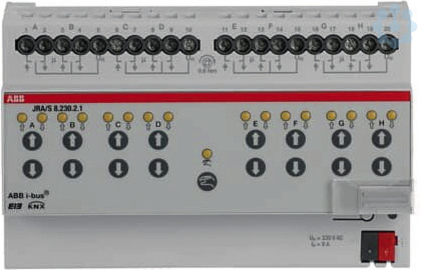 Jalousie-/Rollladenaktor mit manueller Bedienung, ABB i-bus KNX, REG-Jalousieaktoren, Jalousie-/Rollladenaktor mit manueller Bedienung 8-fach, 230 V AC, REG Steuert voneinander unabhängige 230 V AC Antriebe
