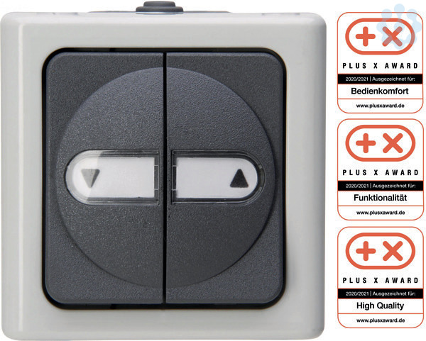 mechanisch verriegelt Betätigungswippen mit Pfeil-Symbol, 10AX, 250V~, IP44, BLUE ELECTRIC, grau