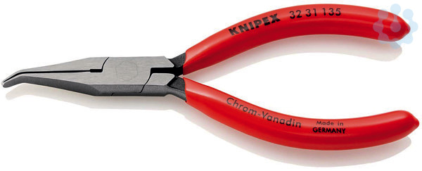 32 31 135 Justierzange Zum Greifen von Bauteilen und Drähten mit kleinem Durchmesser sowie zum Biegen von Kontakt- und Relaisfedern. Polierte Greifflächen. Kanten sorgfältig entgratet. 40° gewinkelte, flache, breite Backen. - Backendicke (am Gelenk) (D): 7,0mm - Spitzenbreite (E): 1,0mm - Spitzendicke (F): 3,5mm - Backenlänge (B): 32,0mm - Kopfbreite (A): 12,5mm