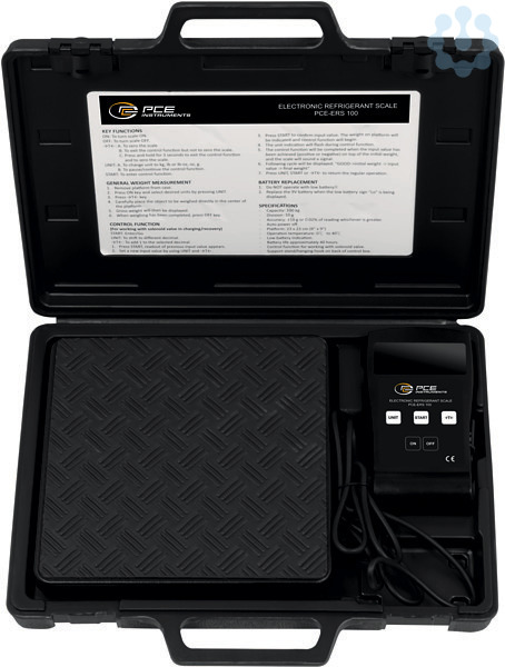 Auflösung von 0,01 kg und ermöglicht so exakte Messungen. Die 230 x 230 mm große Plattform von der Kältemittelwaage ist mit einer rutschfesten Gummibeschichtung versehen, die ein sicheres Abstellen der Flaschen gewährleistet. Durch die externe Bedieneinheit eignet sich die Kältemittelwaage hervorragend für den flexiblen, mobilen Einsatz. Die Control-Funktion ermöglicht das Einstellen eines Gewichtes bei dem die Waage akustisch alarmiert.