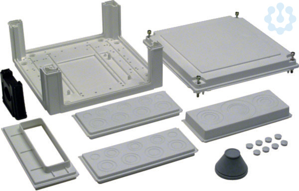Kabelanschlusskasten,univers,324x307x149mm,IP54,SKII, unten leer. Kabelanschlusskasten als Einspeisegehäuse für Zähler und Verteilerschränke IP31/44/54 mit 160 mm oder 205mm Tiefe. Bestehend aus Gehäuse mit Deckel aus Kunststoff, bestückt mit Sammelschienenträger oder leer für optionale Bestückung mit Klemmen oder Montageplatte. Kabeleinführung durch herausnehmbare Flanschplatten an jeder Seite, zum Einlegen des Kabels von vorne. Anbaumöglichkeit seitlich oder unten. Deckel plombierbar. Zur Einspeisung bis 95qmm auf Klemmen oder bis 150qmm auf Sammelschienensystem 40mm-12x5/10mm mit 25kA Kurzschlussfestigkeit oder 60mm-12 bis 30x5/10mm mit max. 55kA Kurzschlussfestigkeit. Schutzart IP54, Schutzklasse II schutzisoliert, Bemessungsspannung 230/400V/50Hz.