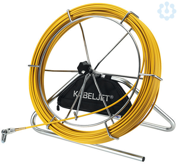 Kabeljet - das variable Kabeleinziehsystem, verzinktes Stahlrohrgestell komplett mit Glasfaserstab 7, 2mm Durchmesser, 2 Anfangshülsen M12, Anfangsbirne 25mm Durchmesser, Schäkel mit Bolzen, Verbindungs- und Spannhülsen, Größe 60m, 1 Spezialkleber