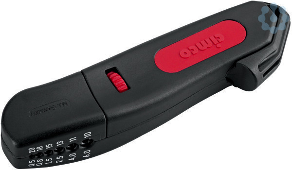 Automatisches Kabelmesser Safety Stripper Plus, Kabelmesser mit selbstdrehender Klinge für Rund- und Längsschnitt, für Kabel von 4 bis 28 mm (5/32 bis 1 1/8) Durchmesser. Die Schnitttiefe ist über eine Schraube individuell einstellbar. Griffschalen aus verschleißfestem, glasfaserverstärktem Polyamid. Abisolieren (0, 5 - 0, 8 - 1, 5 - 2, 5 - 4, 0 - 6, 0 mm³) durch Klappmechanismus am Griffende.