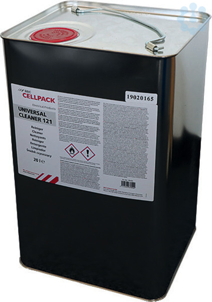 Reinigung von Maschinenteilen und Werkstoffoberflächen. Anwendungsgebiete: Abwaschen von Leitschichten, löst halbleitende Rückstände (z. B. Graphitschichten), reinigen und entfetten von Motoren und elektrischer Ausrüstung, reinigen von Kabeln und Leitungen. Eigenschaften: Verwendbar auf Neopren, Polyethylen, EPR, XLPE, PVC, Butyl-Gummi und thermoplastischen Isolationen, reinigt und entfettet ohne zu leiten und ohne Rückstände, sicher, schnell wirkend, keine Zersetzung. Lieferumfang: Reiniger UNIVERSAL CLEANER 121.