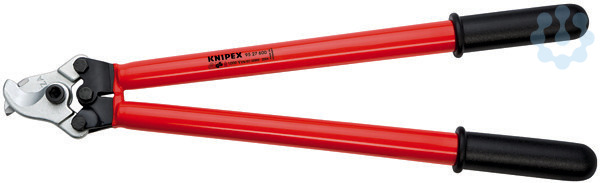 95 27 600 Kabelschere Zum Schneiden von Cu- und Al-Kabeln, ein- und mehrdrähtig. Nicht für Stahldraht und Drahtseile geeignet. Gehärtete Schneiden mit Präzisionsschliff. Schneidet glatt und sauber, ohne zu quetschen. Günstige Übersetzungsverhältnisse durch Kniehebel-Mechanik. Klemmschutz verhindert Quetschverletzungen. Nachstellbares Schraubgelenk. Verschraubter Messerkopf, auswechselbar. - Schneidwert Cu-Kabel, mehrdrähtig: 150mm² - Schneidwert Cu-Kabel, mehrdrähtig: Ø 27mm - AWG: 6?/ 0 - VDE-geprüft: Ja