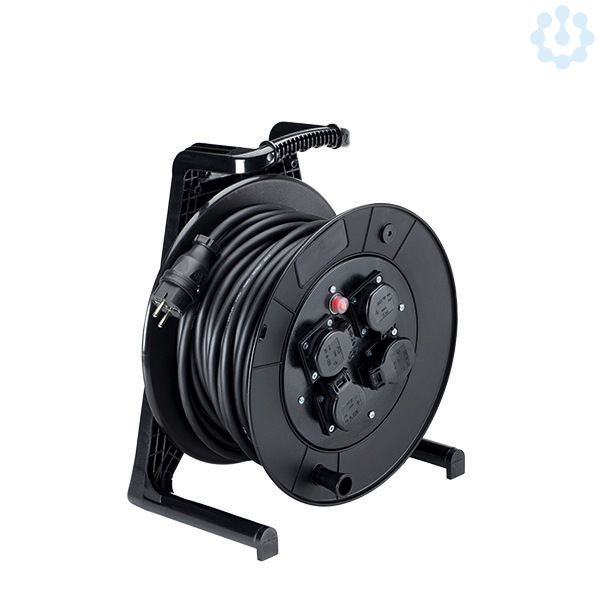 BACHMANN Meistertrommel 4xSchuko, schwarz, IP54, inkl. Thermosicherung Trommel aus Spezialkunststoff, schwarz 25m H07RN-F3G1,5mm², schwarz mit Schutzkontakt-Zentralstecker In Kartonbox verpackt DGUV-I 203-006 konform