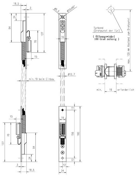 Kabelübergang, Zarge und Tür können getrennt gefertigt und geliefert werden., Die Funktion der elektrischen Komponenten kann im Werk an dieser Schnittstelle schon geprüft werden., Türflügel und Zarge können zum Einbau getrennt werden, ohne dass elektrotechnische Kenntnisse beim Monteur vorhanden sein müssen., Die Klemm-Steckverbindung auf der Zargenseite kann zum direkten Anschluss an die Hausinstallation genutzt werden, ohne dass eine Verteilerdose zwischengesetzt werden muss., Ein hochwertiges Spezialkabel im Kabelübergang sorgt für eine hohe Lebensdauer dieses durch Bewegung stark belasteten Bauteils., Verschleiß durch Scheuerstellen im Kabelübergang wird ausgeschlossen., Einfache Trennung von Türflügel und Zarge bei Reparatur keine elektrotechnische Kenntnisse notwendig., Schnittstelle zu Gebäudeinstallation leichter Anschluss von Wartungsund Diagnosegeräten. dadurch einfaches Erkennen von Fehlerquellen und schnelle Beseitigung der Fehler., Lange Ausführung