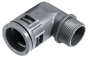 In Kombination mit Kabelschutzschlauch:, SILVYN® RILL PA 6, SILVYN® RILL PA 12, Für geringe Platzverhältnisse, Drehbare Anwendungen, 90° Winkel ermöglicht optimale Montage, Schnelle Montage, Einfache Demontage, Zugfest, Hohe Abdichtung, Metrisches Anschlussgewinde, 90° Winkel, Grundkörper mit Innendichtung, Oberteil mit Rasthülse, UL FILENUMBER E308201,
