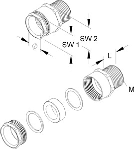 Kabelverschraubung mit langem metrischem Anschlussgewinde nach DIN EN 60423, mit Sechskant-Zwischenstutzen, mit Druckringe und Dichtring, halogenfrei. Nenngröße : M 20 für Kabel-Ø : 11 - 13 mm Anschlussgewindelänge : 15 mm Schlüsselweite 1 : 20 mm Schlüsselweite 2 : 22 mm Einsatztemperaturbereich : -40° bis 100°C Schutzart : IP54 mit Anschlussgewinde-Dichtring 987M...(bitte gesondert bestellen!) : IP65 Werkstoff Verschraubungskörper : Messing, vernickelt Werkstoff Druckring : galvanisch verzinkt blaupassivierter Stahl Werkstoff Dichtring