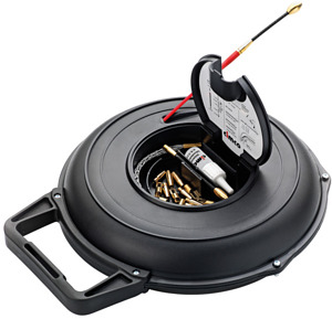 Kati - Blitz -Set -Ordung Kabeleinzug mit Komfort Kabeleinzugsgerät wie Kati Blitz , jedoch zusätzlich mit Ortungsfunktion über handelsübliche Kabelsuchgeräte. Gezieltes auffinden und verfolgen des Rohrverlaufs oder von blockierten Stellen. Mit bewährtem Polycat Glasfieberprofil in schlagfestem Gehäuse. Keine beweglichen Außenteile und austauschbarer Schleifringübertrager. Mit eingeBautem Zubehör-Sortiment und Spezial-Zughilfe Katicrip, je 1 Führungskopf 7 - 10 mm Durchmesser, 5 Anfangshülsen, 3 Verbindungshülsen, 5 Zugösen, 1 Kabelziehstrumpf 6 - 9 mm Durchmesser, 1 Glasfaser-Fixkleber (Flasche 3 g). 30 M